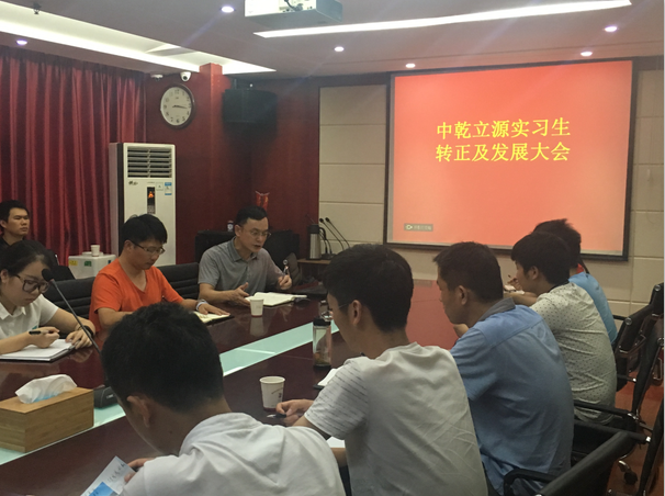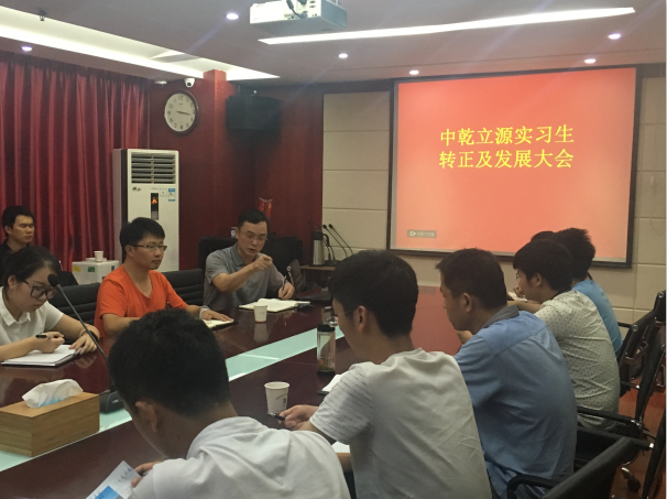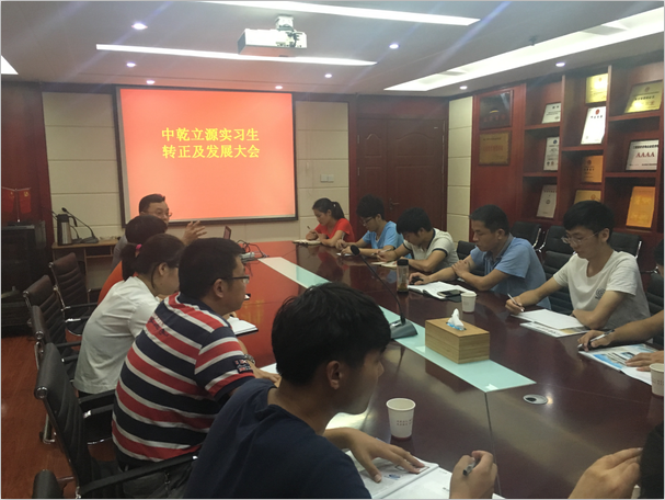 為了解實習生員工轉正后的思想動態及工作狀態,搭建交流溝通的平臺,促進新員工成長。2016年7月18日,中乾立源行政人事部在管理顧問馮博士的領導下,組織召開了實習生轉正及發展大會。參與此次大會人員主要有中乾立源董事長巫世峰同志,中乾立源管理顧問馮博士,行政人事部各位員工以及會議主體--實習生。