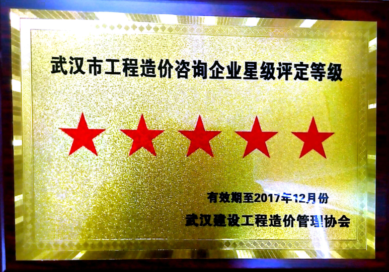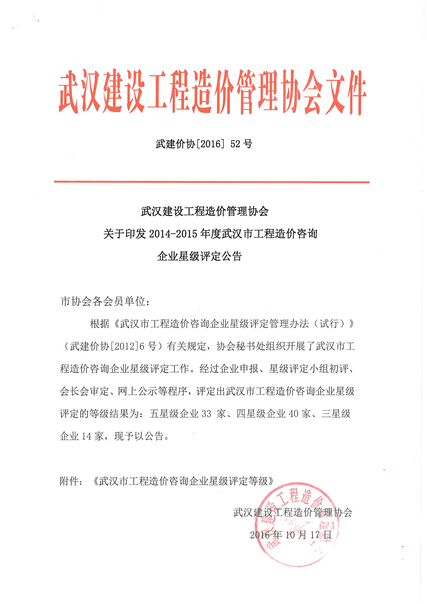 2016 年武漢市工程造價咨詢企業(yè)星級評定等級