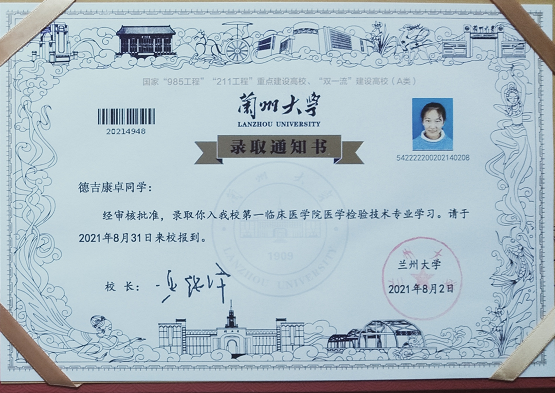 8月,拿到錄取通知書,德吉康卓第一時間向巫叔叔、許阿姨報喜。考慮到孩子讀大學(xué)學(xué)費(fèi)還沒著落,巫世峰夫婦當(dāng)即匯去兩萬元。