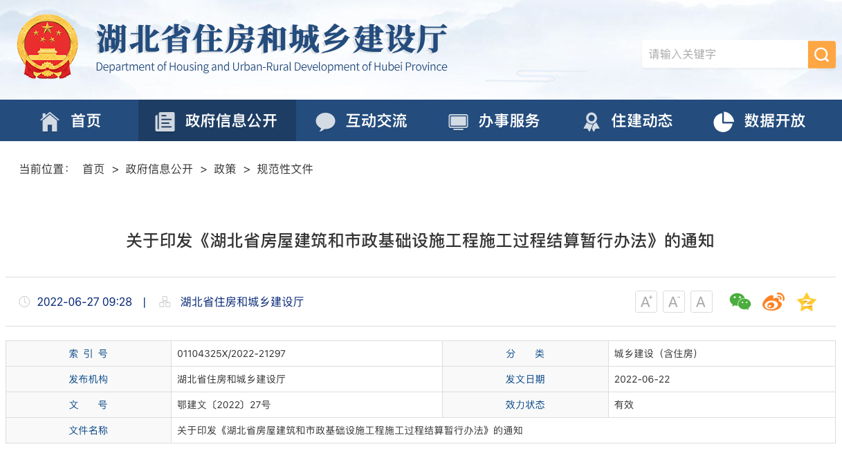 我廳聯合省財政廳、省公共資源交易監督管理局印發了《湖北省房屋建筑和市政基礎設施工程施工過程結算暫行辦法》(以下簡稱《暫行辦法》)。