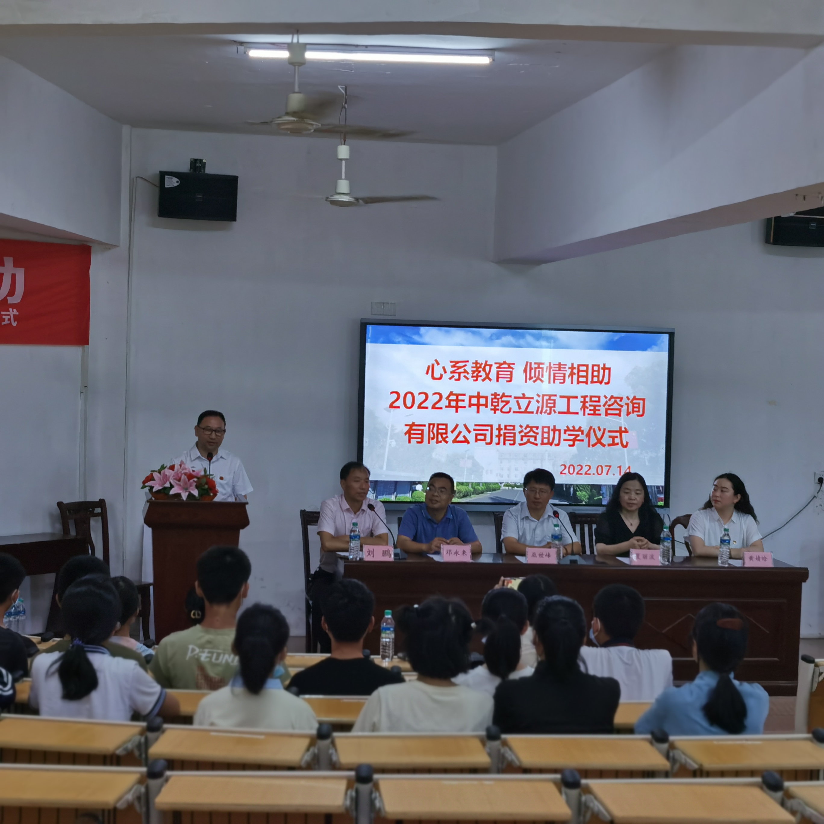 2022年7月14日上午9時,中乾立源“心系教育 傾情相助”捐資助學儀式在萬安中學團校舉行。參加本次大會的有:中乾立源董事長巫世峰,總經理夏麗波,黨支部書記黃婧晗,副總李朝,財務總監喬伊,辦公室主任閔芳,李丹等;萬安中學領導、相關處室負責人及老師;受助學生50人。大會由萬安中學副校長劉鵬主持。