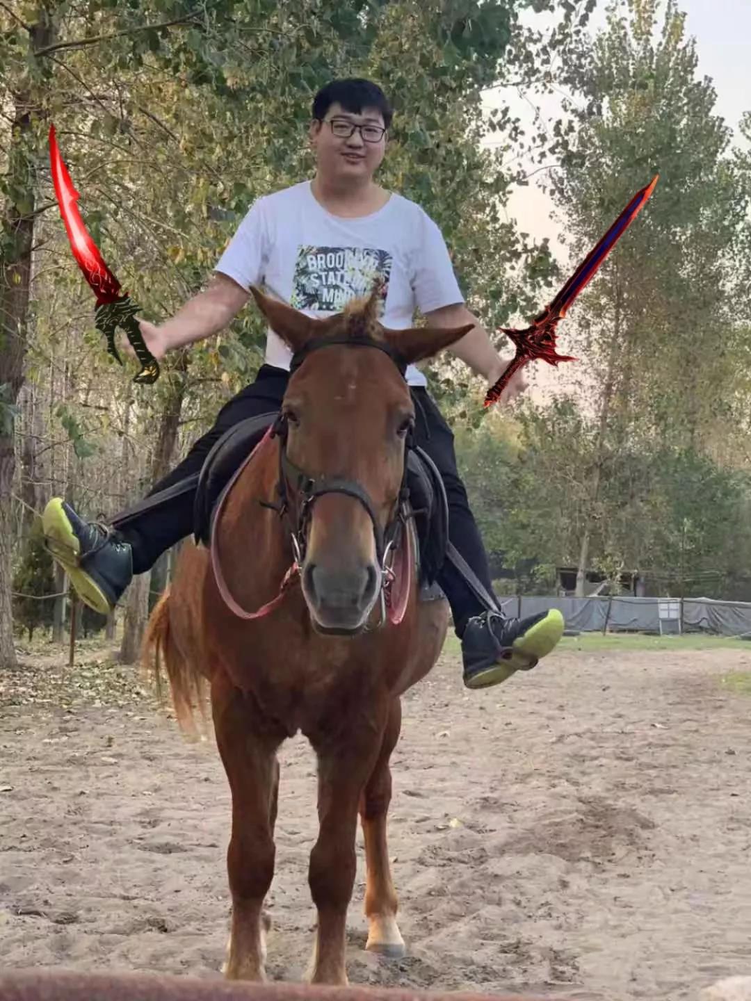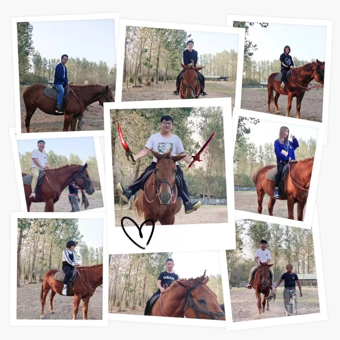 同事們身騎駿馬,一路馳騁,策馬奔騰。藍天白云,晴空萬里,一群年輕人,朝氣蓬勃。