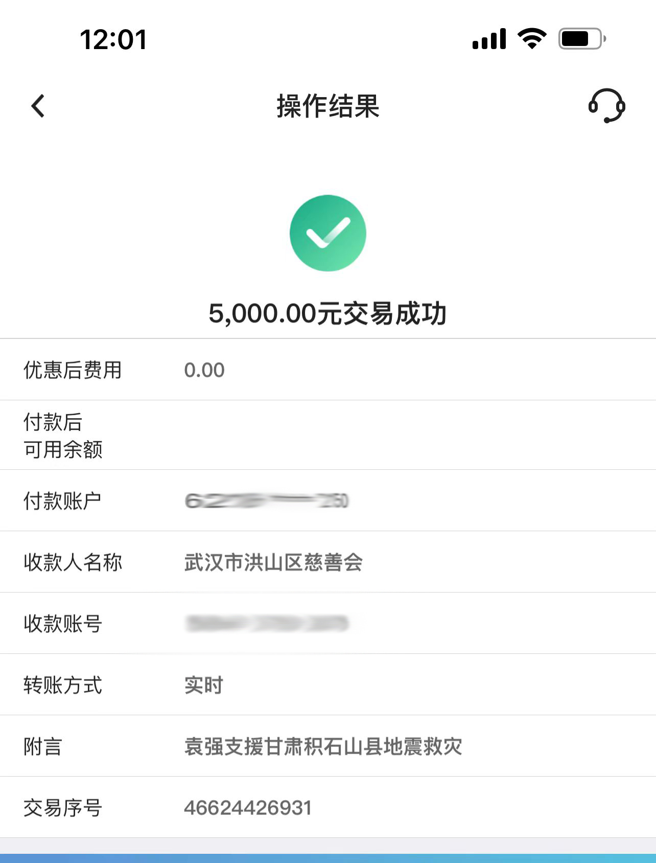 在中乾立源的帶動下,湖北貫美科技有限公司總經理袁強同志慷慨解囊,通過洪山慈善會中乾基金向災區捐款5000元。