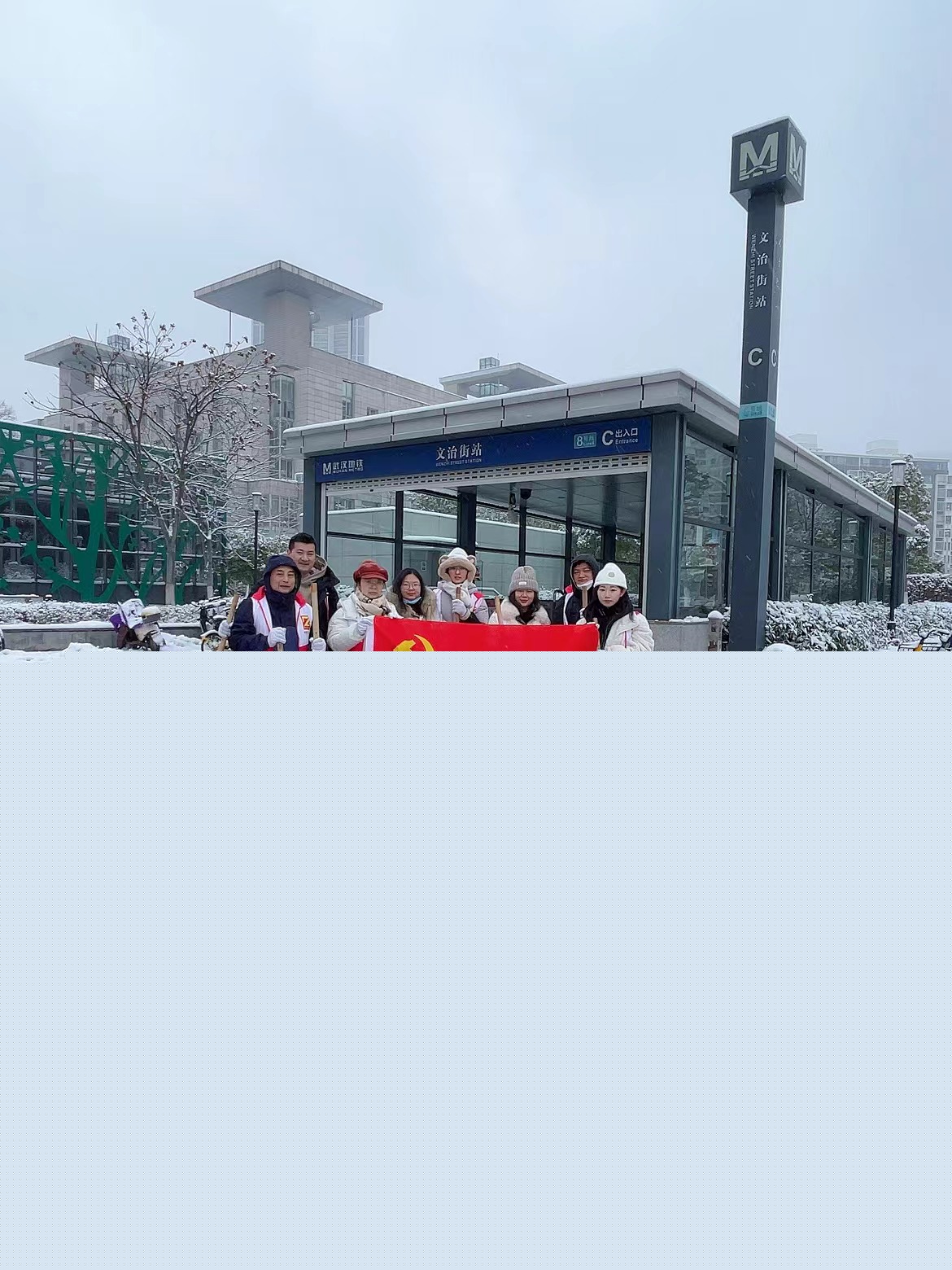 近日,受強冷空氣影響,武漢市迎來大范圍寒潮和低溫雨雪冰凍天氣,給群眾出行和生產(chǎn)生活帶來不利影響。中乾立源黨支部積極響應(yīng)號召,第一時間啟動應(yīng)急預(yù)案,組織黨員開展鏟雪除冰志愿活動,為廣大群眾安全出行貢獻中乾力量。