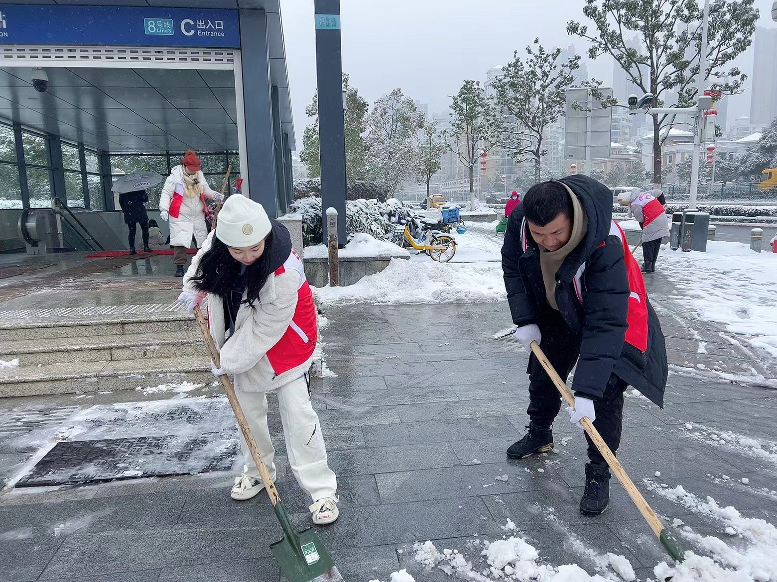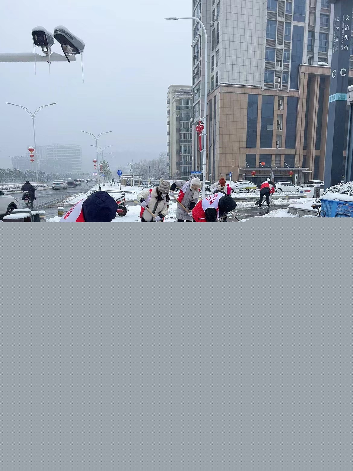 除此之外,在武漢三鎮(zhèn)各街道社區(qū)掃雪除冰活動現(xiàn)場也都有中乾人的身影。他們沖在前、干在先、戰(zhàn)嚴寒,斗冰雪,在冬天凜冽的寒風(fēng)中構(gòu)成了一道靚麗的風(fēng)景線。