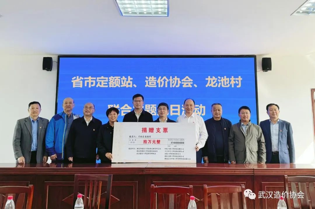湖北省建設(shè)工程標(biāo)準(zhǔn)定額管理總站、湖北省建設(shè)工程造價(jià)咨詢協(xié)會(huì)、武漢建設(shè)工程造價(jià)管理協(xié)會(huì)、湖北信永中和工程管理咨詢有限公司、天宇中開(kāi)工程咨詢有限公司、中乾立源工程咨詢有限公司、永拓工程咨詢有限公司、湖北大鵬工程咨詢有限公司等八家單位還一起為龍池村捐贈(zèng)了共計(jì)10萬(wàn)元的資金,用于支持該村的鄉(xiāng)村振興項(xiàng)目建設(shè)。