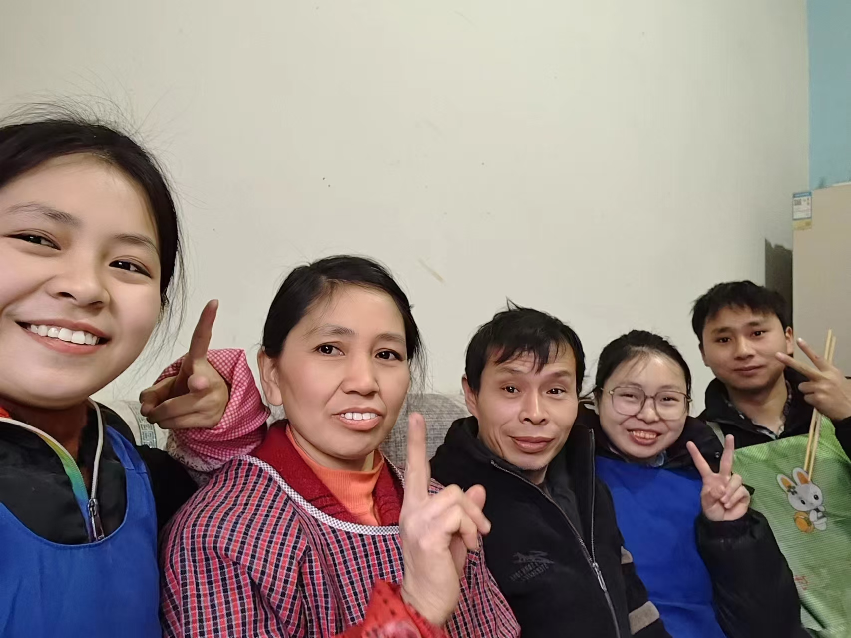 (胡艷一家人:左三胡艷父親、右二胡艷)