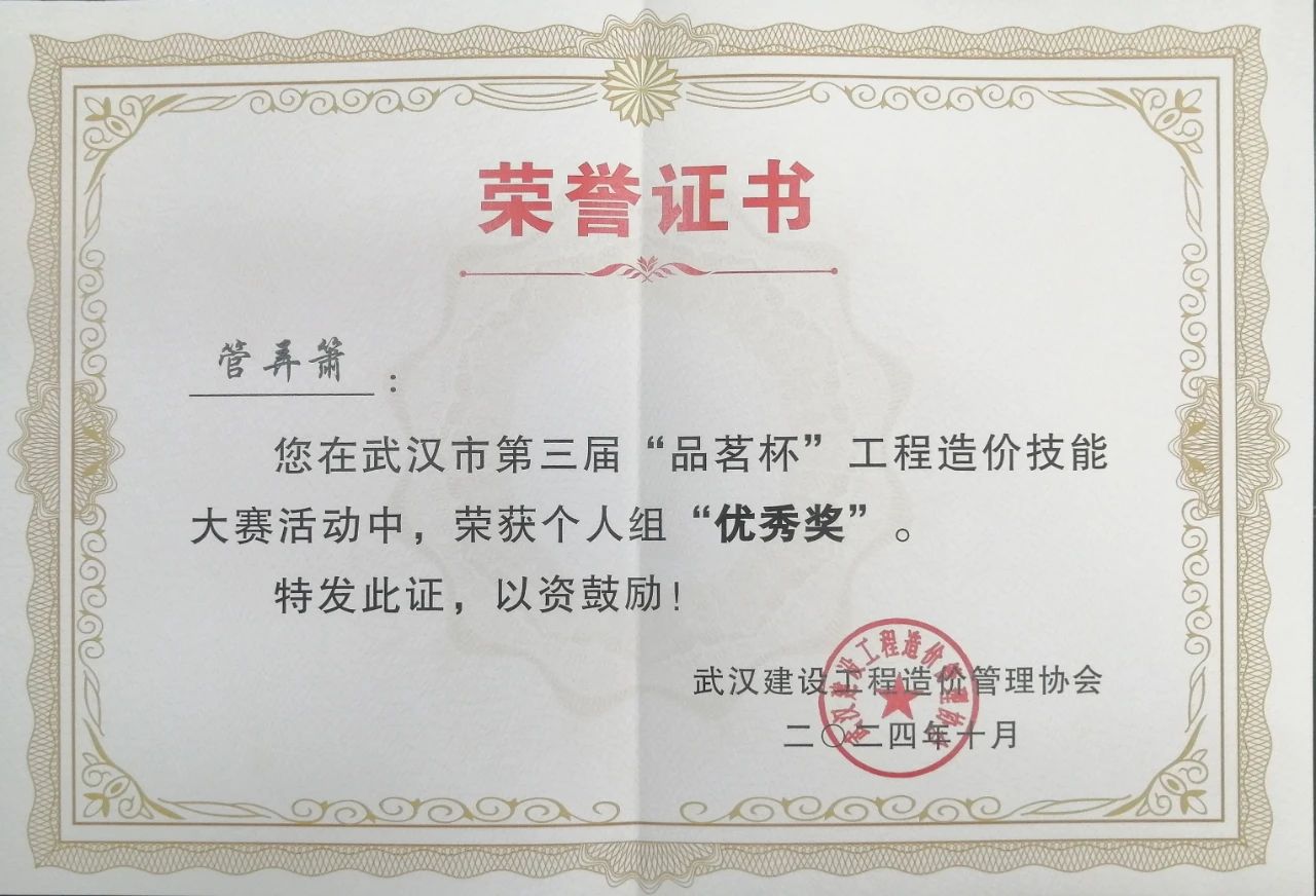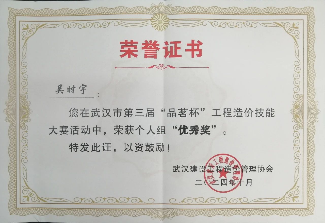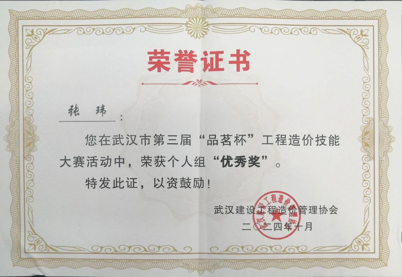 熱烈祝賀中乾立源工程咨詢有限公司榮獲武漢市第三屆“品茗杯”工程造價技能大賽“團體三等獎”,員工朱海、彭婭婷榮獲個人二等獎,張楊、陳乾友,榮獲個人三等獎,吳時宇、管弄簫、禹霄、張瑋榮獲“個人優秀獎”。