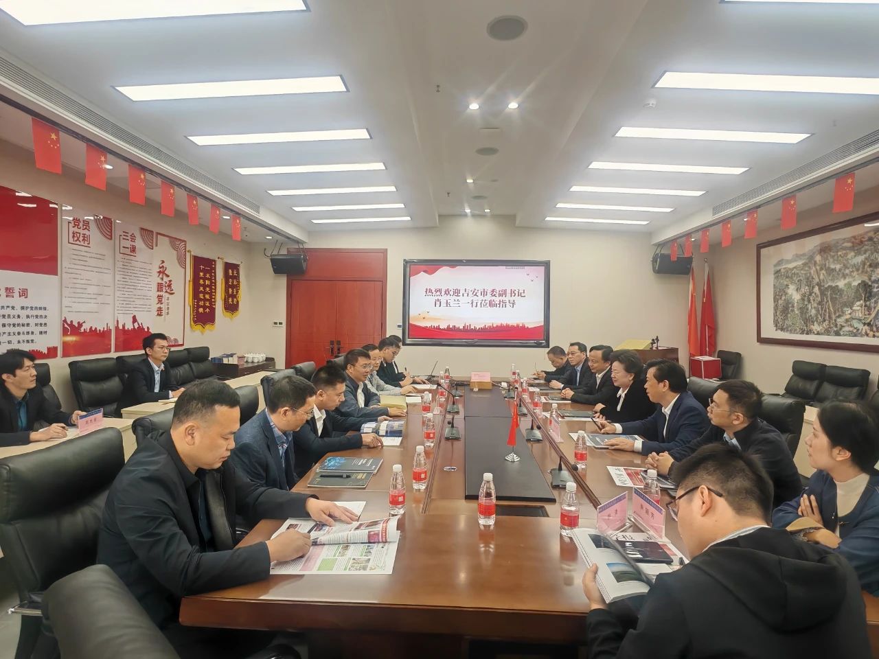 11月9日上午,吉安市委副書記肖玉蘭一行蒞臨中乾立源參觀指導工作。吉安市政協副主席、市工商聯主席徐年春,市工商聯黨組成員、副主席唐樹根,萬安縣委副書記謝建軍,市農業農村局黨委委員、市農業產業發展服務中心主任陳有連,市委綜合二科負責人劉鵬,市工商聯維權服務中心主任肖穎芳,市工商聯維權服務中心干部鐘清,萬安縣專業招商五隊陳東陪同考察。