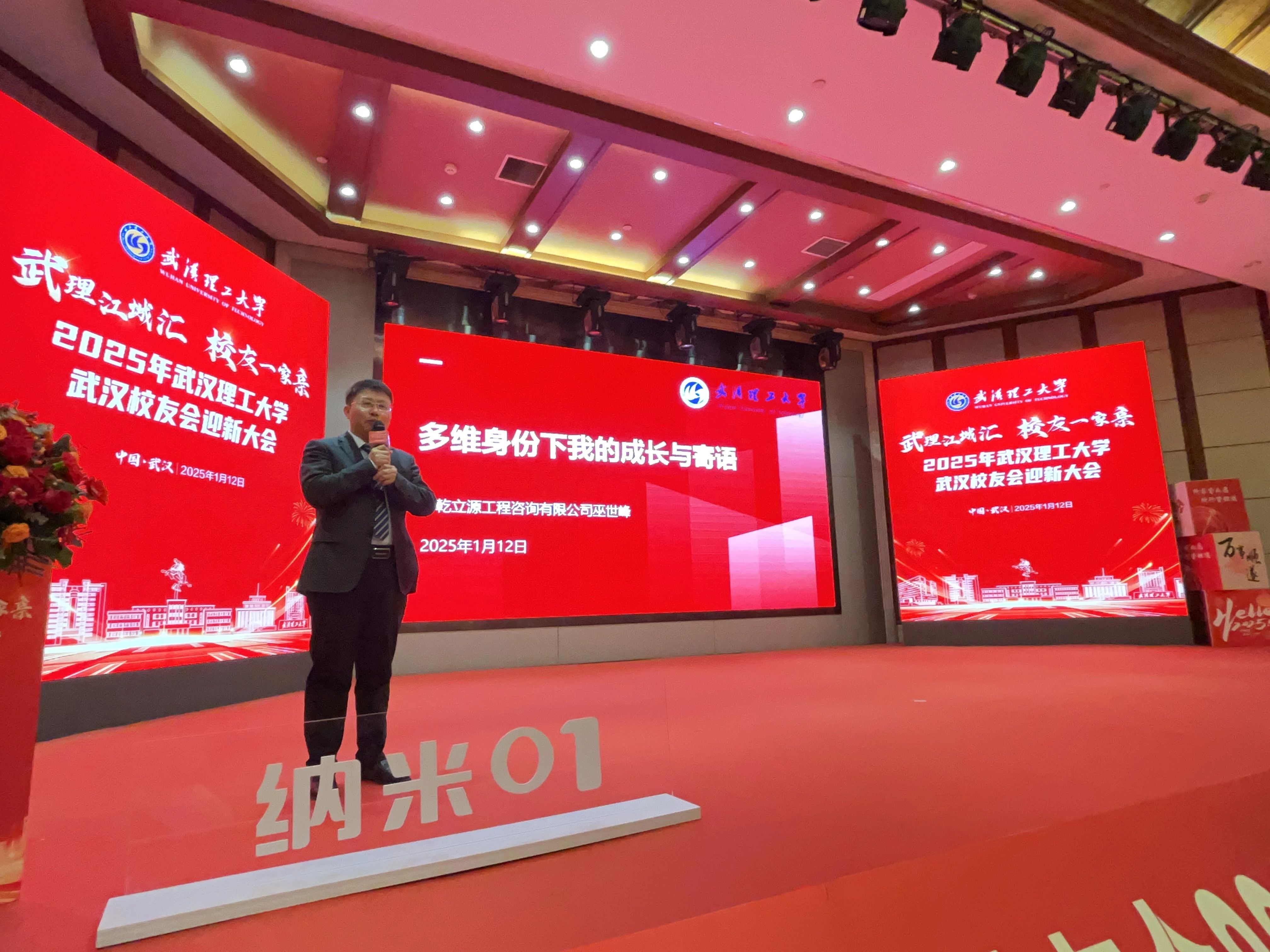 2025年1月12日,武漢理工大學武漢校友會在武漢市光谷潮漫凱瑞國際酒店隆重舉辦了2025迎新會與新春年會。作為武漢理工大學武漢校友會副會長、湖北省及武漢市政協委員、洪山區政協常委、民建會員,武漢建設工程造價管理協會會長、中乾立源工程咨詢有限公司董事長的巫世峰先生受邀出席了此次盛會,并在會上分享了寶貴的經驗和心得,為新老校友提供了寶貴的指導。
