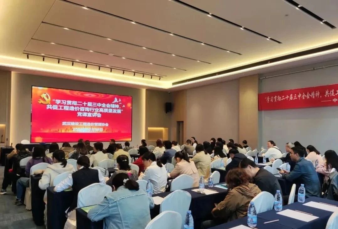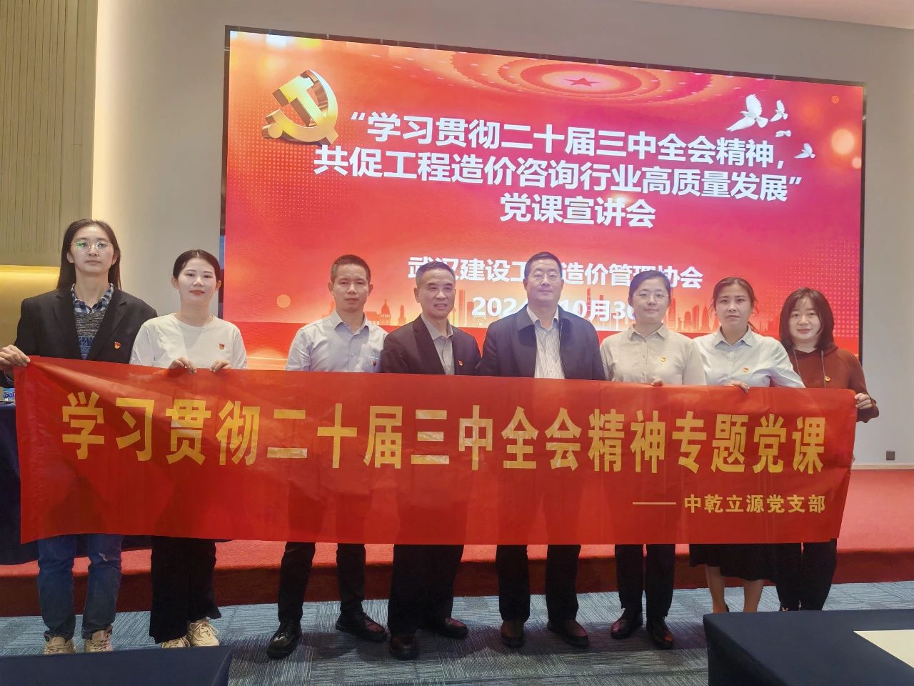 2024年10月30日上午,武漢建設工程造價管理協會功能型支部精心籌備的“學習貫徹黨的二十屆三中全會精神,共促工程造價咨詢行業高質量發展”專題黨課宣講會在江岸區凱里亞德酒店哈佛廳圓滿舉行。中乾立源黨支部積極組織黨員代表參加本次活動。