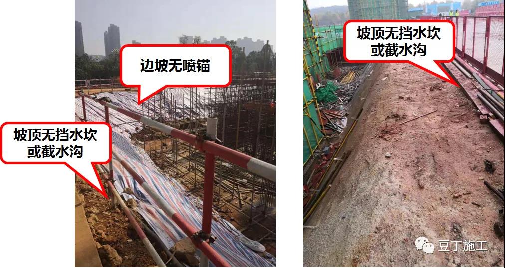 基坑邊坡擋水、排水或噴錨不到位。