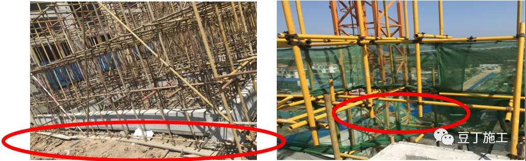 模架體系缺少一個方向或兩個方向頂部小橫桿,導致自由端超高;個別項目模架立桿部分懸空。