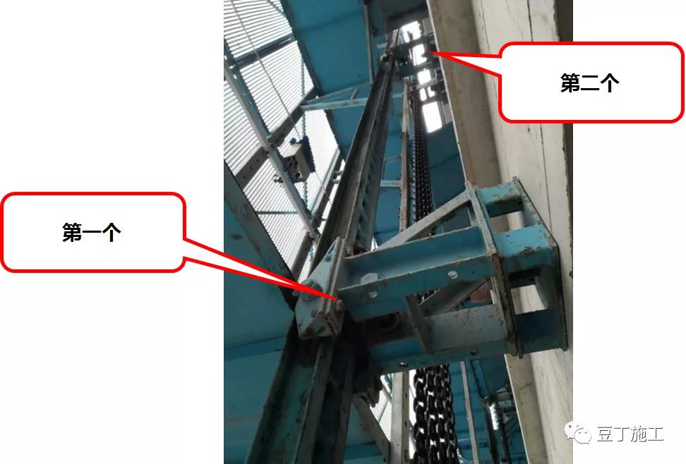 爬架方案和方案交底對于升降機頂部的架體連接及加強措施均未明確,導致現場電梯頂部爬架變形,鋼管變形。