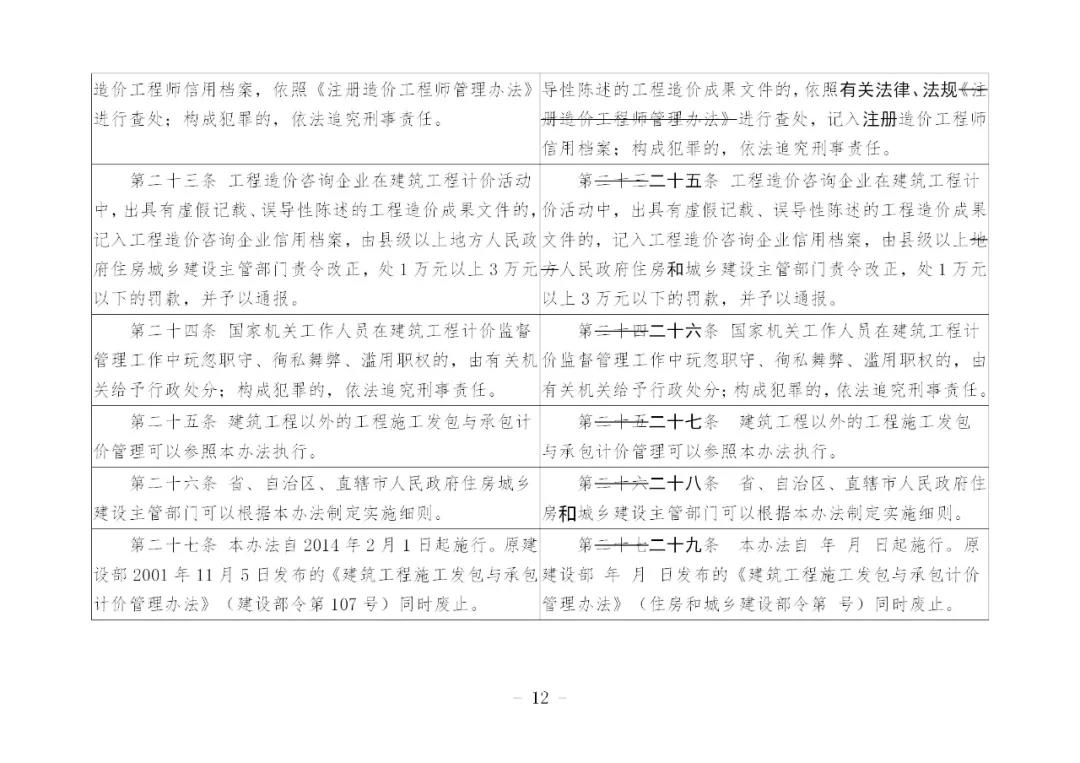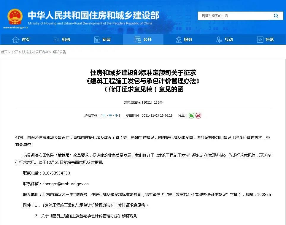 住建部標準定額司關于征求《建筑工程施工發包與承包計價管理辦法》(修訂征求意見稿)意見的函