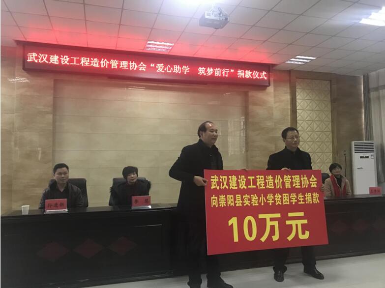 2018年12月19日,崇陽縣實(shí)驗(yàn)小學(xué)在實(shí)驗(yàn)樓一樓報(bào)告廳舉辦了“愛心助學(xué) 筑夢(mèng)前行”的捐款儀式。來自武漢的建設(shè)工程造價(jià)管理協(xié)會(huì)慷慨解囊、捐款相助,向崇陽縣實(shí)驗(yàn)小學(xué)的100名貧困學(xué)生捐款10萬元,在燦爛的陽光下譜寫了一曲溫暖的樂章。