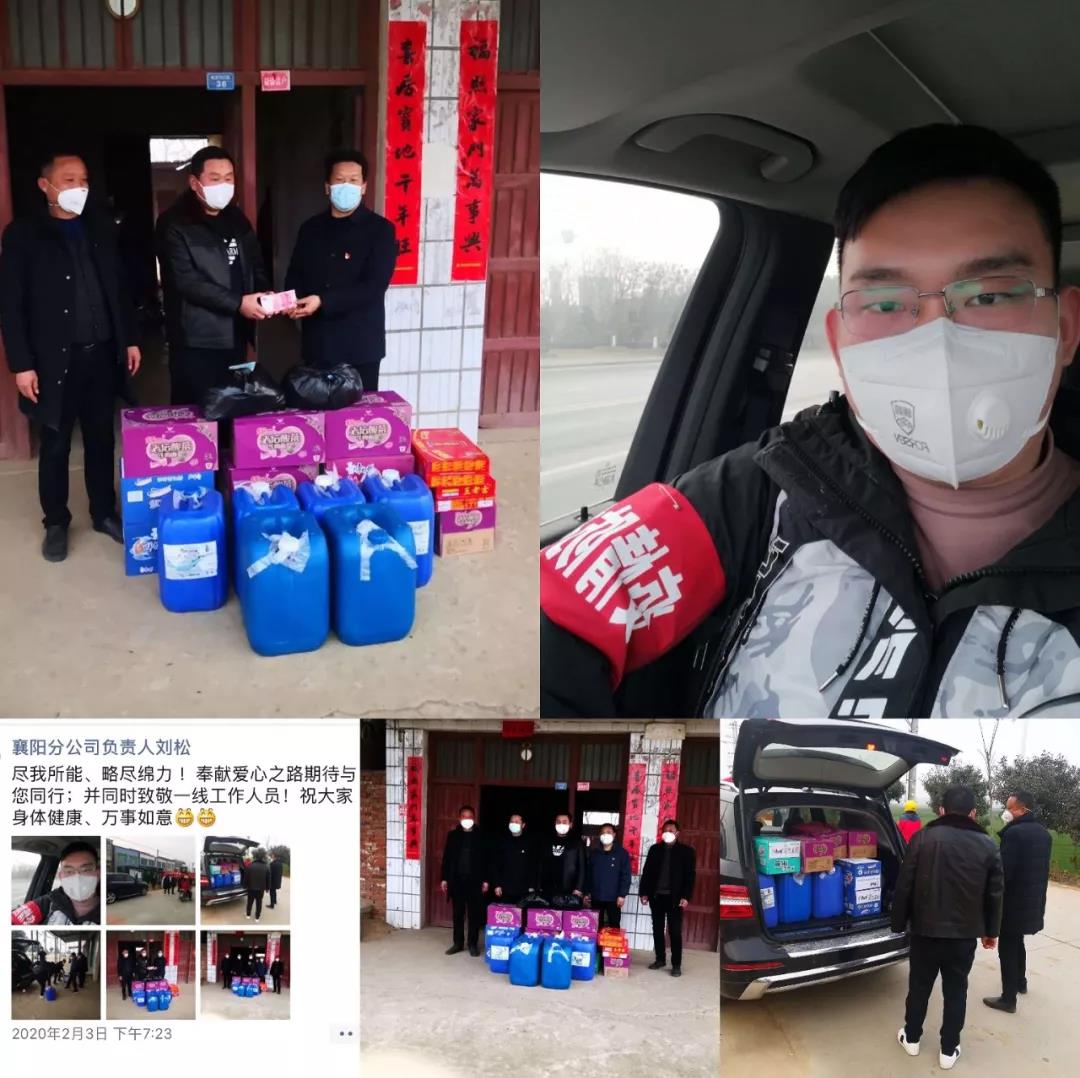 向襄陽市襄州區朱集鎮政府及襄陽市樊城區洪溝社區居委會,共捐贈消毒原液400斤,桶裝方便面10箱,N95醫用口罩300個,醫用手套200副,現金10000元;