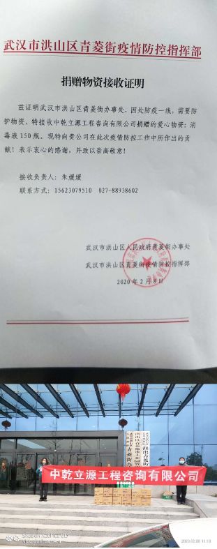 1月23日,中乾立源積極響應黨支部號召,董事長巫世峰攜夫人許明瑩冒著被傳染的風險,堅持在第一時間前往武漢市慈善總會,以公司名義捐贈人民幣10萬元,以支持抗擊疫情,展現了民營企業勇于肩負社會責任的精神。