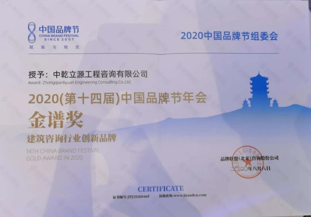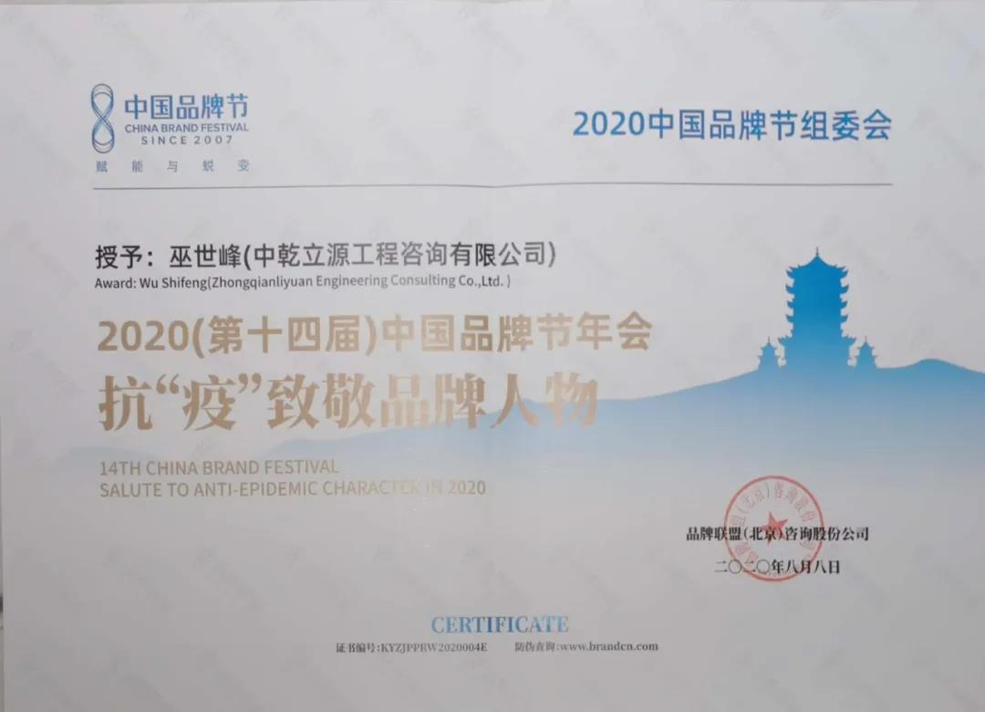 中國品牌節大會授予中乾立源第十四屆中國品牌節“金譜獎”,授予董事長巫世峰先生“抗疫致敬品牌人物”榮譽稱號。