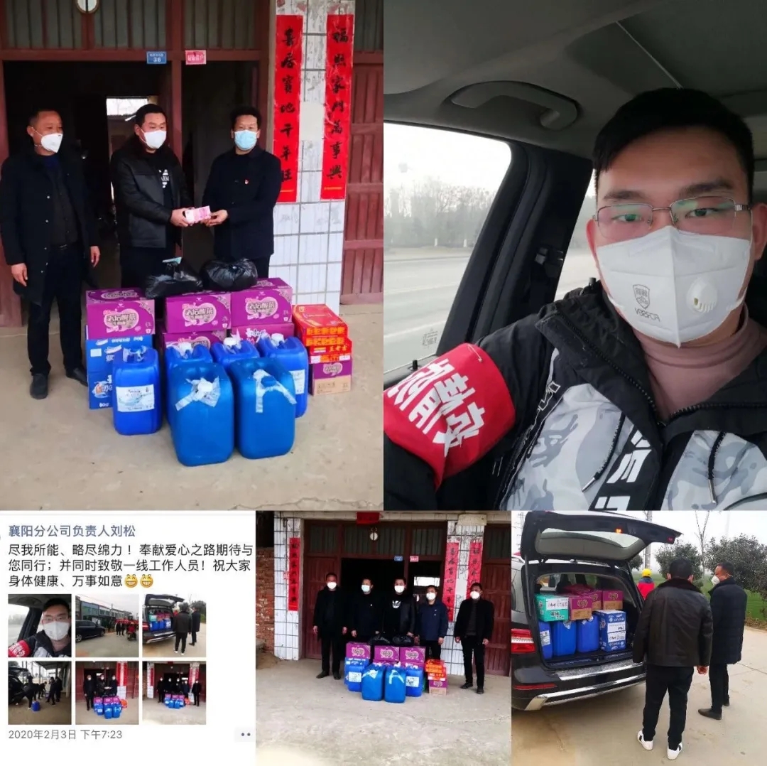 劉松第一時(shí)間向襄陽市襄州區(qū)朱集鎮(zhèn)政府及襄陽市樊城區(qū)洪溝社區(qū)居委會(huì),捐贈(zèng)消毒原液400斤,桶裝方便面10箱,N95醫(yī)用口罩300個(gè),醫(yī)用手套200副,現(xiàn)金10000元;